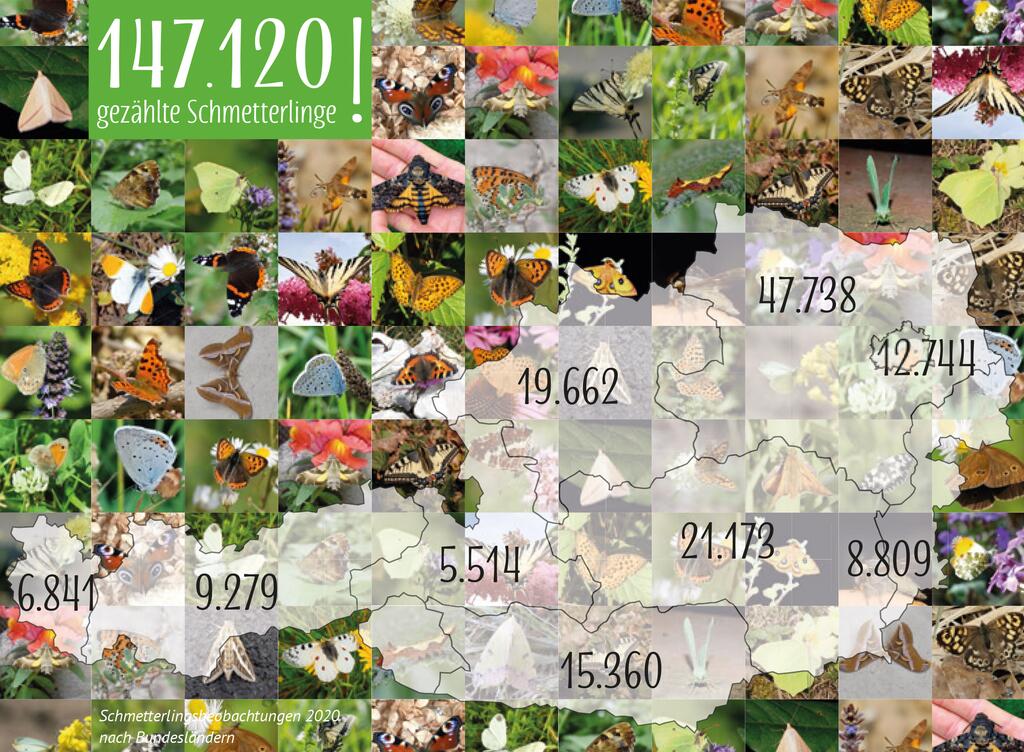 Mit einem Zuwachs von mehr als 16 Prozent im Vergleich zu 2019 haben im Vorjahr 18.715 Citizen Scientists mitgeforscht. Ein herzliches Dankeschön! Die aus allen Bundesländern gemeldeten Daten sind von unschätzbarem Wert für die Erhebung der heimischen Schmetterlingsbestände.