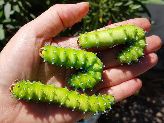 Übrigens können auch die Raupen des heimischen Wiener Nachtpfauenauges zirpen. Andere Raupen können unbeschadet giftige Pflanzen fressen, reichern das Gift sogar im Körper an und warnen vor ihrer Ungenießbarkeit mit knallbunten Farben. So zum Beispiel die wunderschöne Raupe des Wolfsmilchschwärmers.