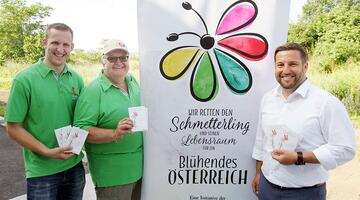 ADEG Kaufmann Walter Schmutterer Junior unterstützt Blühendes Österreich beim Erhalt der heimischen Artenvielfalt. Das Ergebnis kann sich sehen lassen - und zwar direkt bei seinem ADEG Markt in Reisenberg (NÖ). Eine Blumenwiese steht hier in voller Blüte und bietet wertvollen Lebensraum für heimische Schmetterlinge.