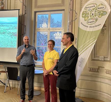 Für vielseitige Informationen sorgten ein Impulsvortrag von DI Wolfgang Suske (Initiator des Umsetzungsdialogs Renaturierungsgesetz) und die Vorstellung von bereits bestehenden Best Practice Projekten aus der Region zu den Themen Wald, Trockenrasen, Gewässer und Hochwasserretention, Siedlungsgebiet sowie Unternehmens-Grünflächen. Die Verleihung der Netzwerk Natur Region Auszeichnungs-Tafeln zu wertvollen Naturgebieten an insgesamt 16 Gemeinden und drei Unternehmen - Austrian Institute of Technology (Seibersdorf), Österreichische Rundfunksender GmbH - ORS (Moosbrunn) und drei BILLA Märkte (Altenmarkt an der Triesting, Matzendorf-Hölles, Vösendorf) - soll Bewusstsein für erfolgreiche Projekte schaffen und ist gleichzeitig ein Dankeschön für das große Engagement bei Renaturierung und Erhaltung der Flächen.